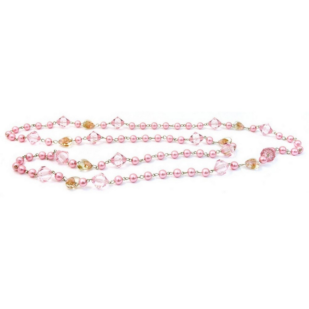 Necklace Pink Hearts & Crystals Made With Glass Pearl & Resin
