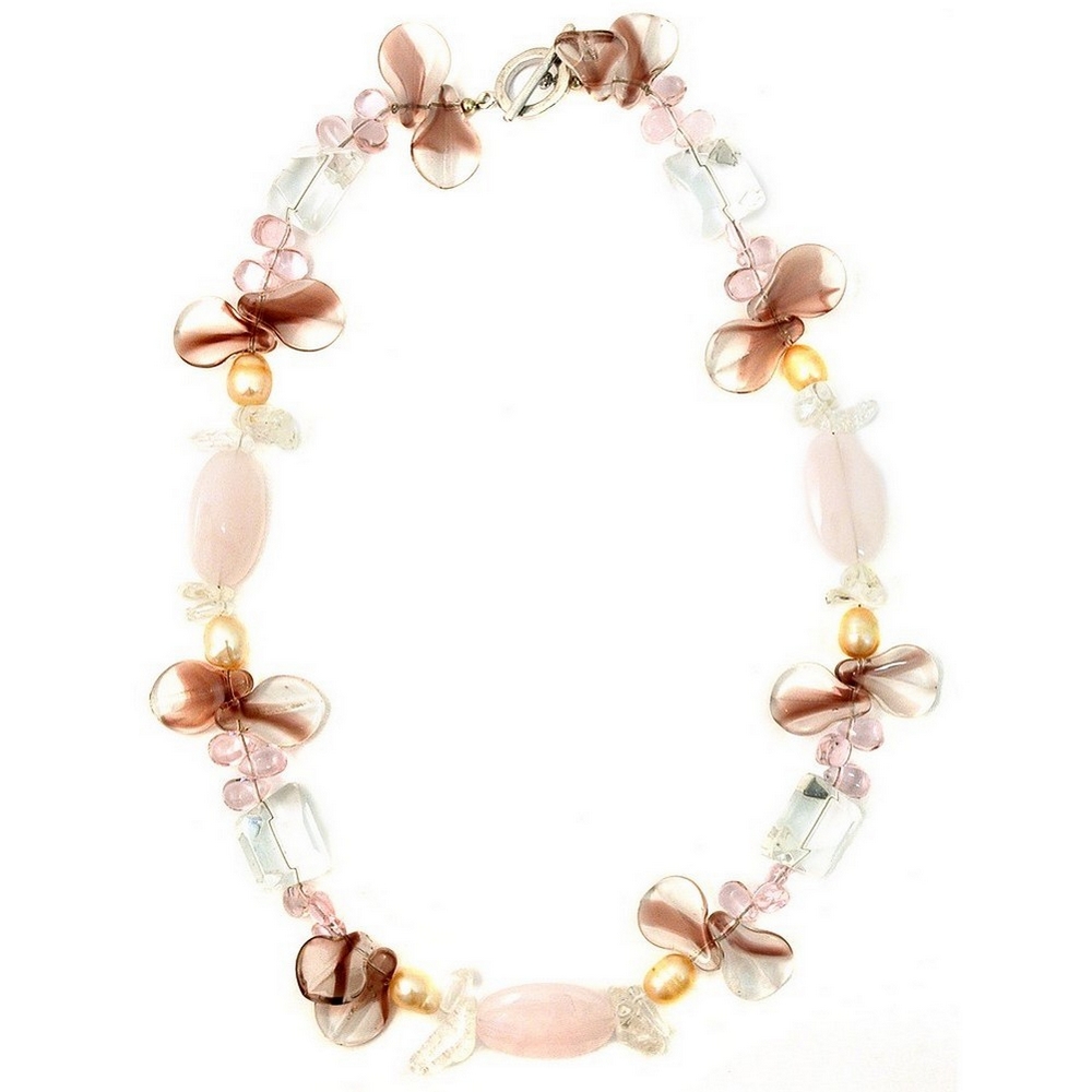 Necklace Rose Quartz Amethyst Tone 45cm Made With Crystal Glass & Pearl
