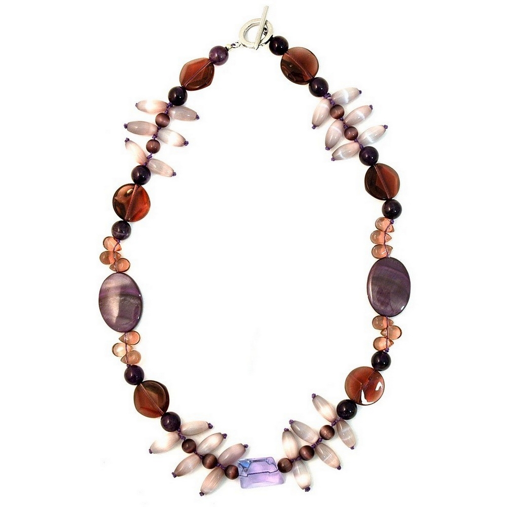 Necklace Cat Eye Rice 45cm Made With Amethyst & Crystal Glass