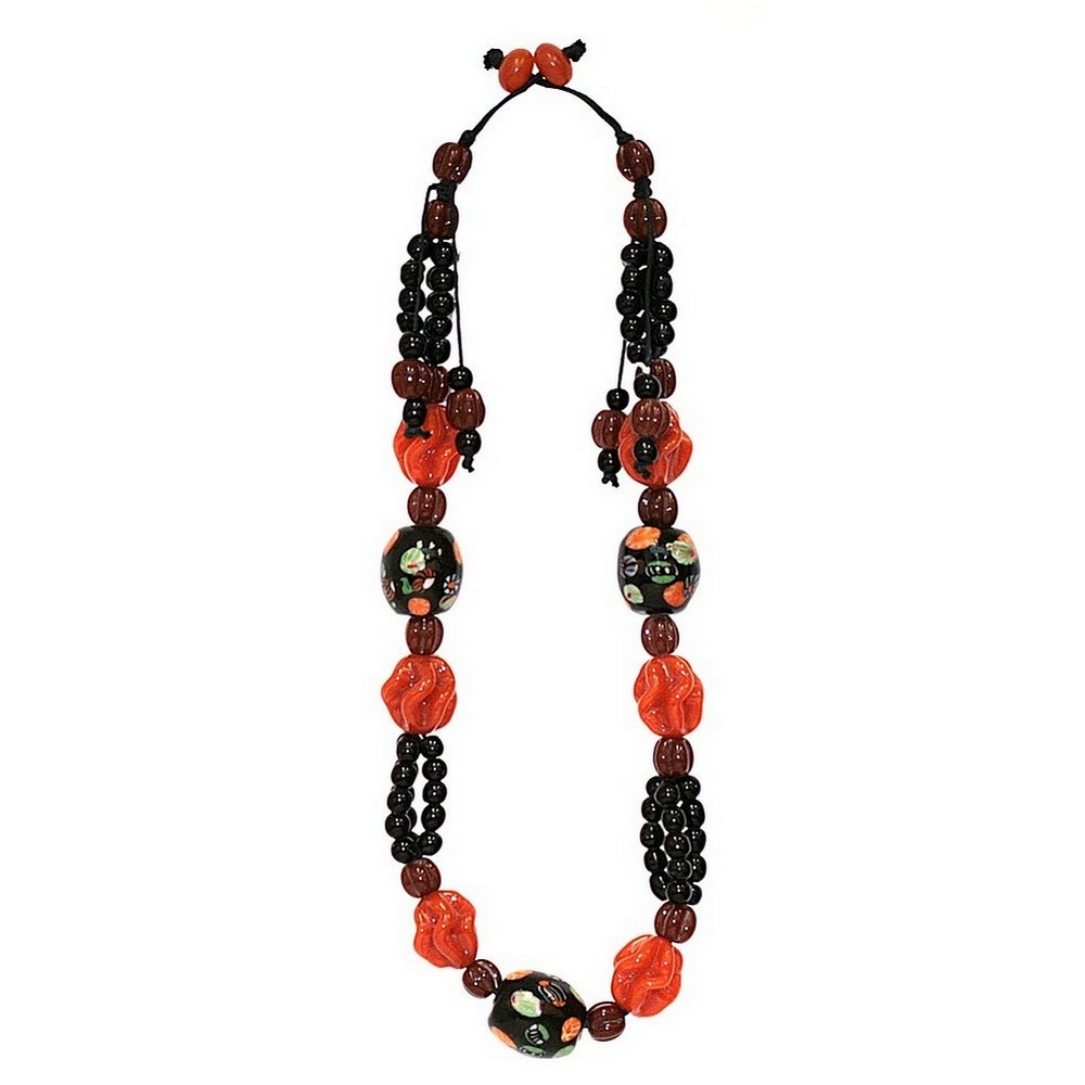 Necklace Artisan Bead Orange 58cm Made With Glass