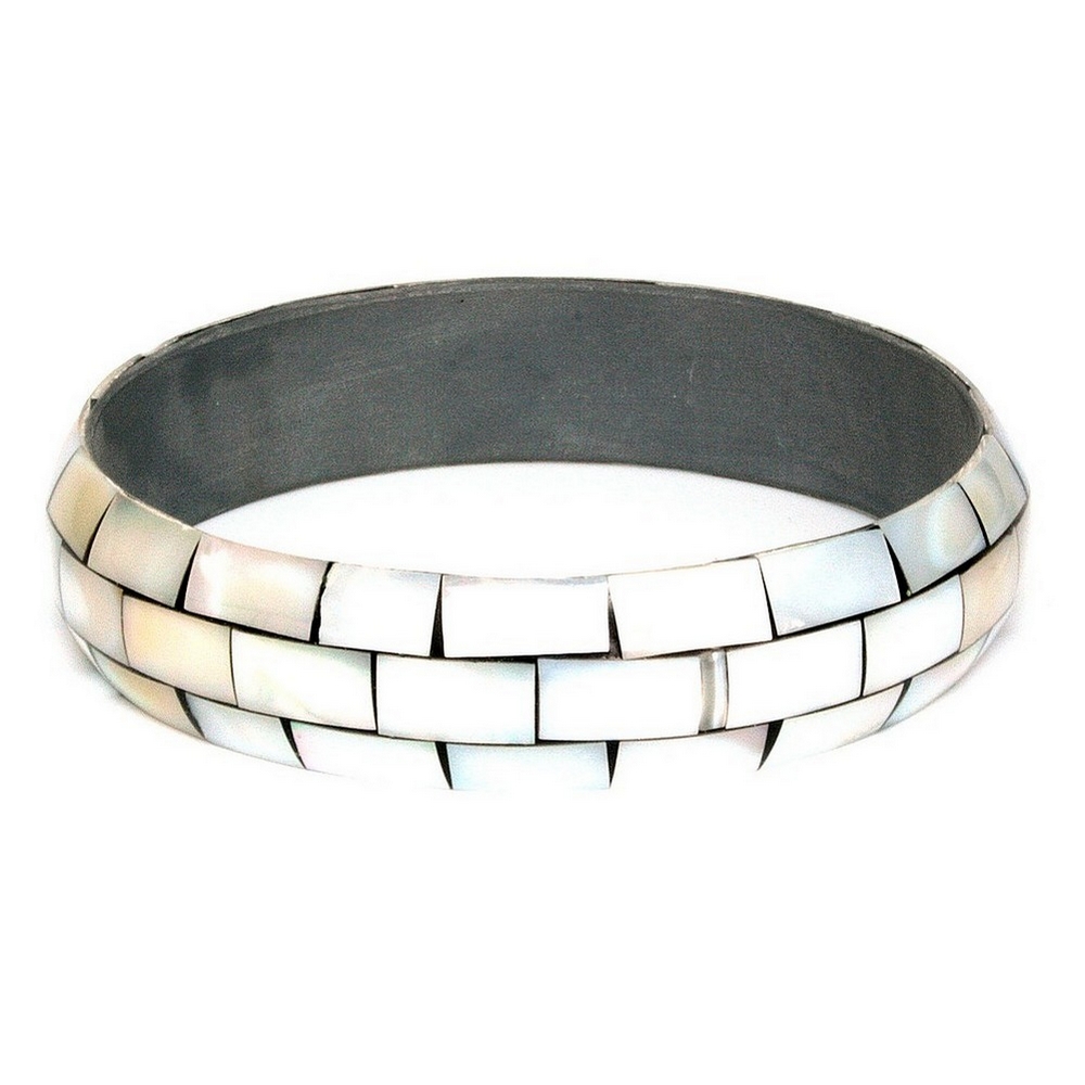 Bangle White 3 Row Rectangle Inlay 18mm Made With Shell