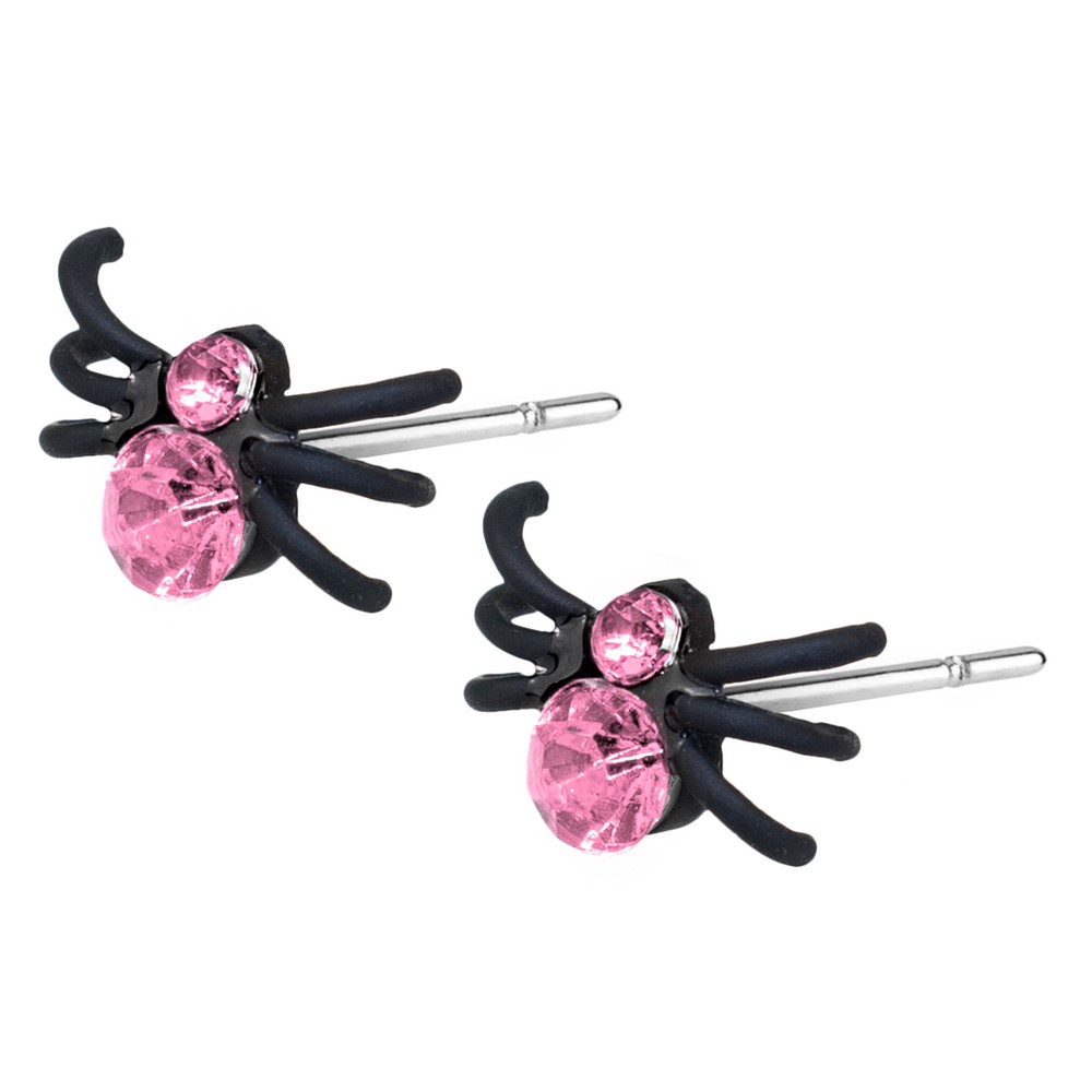 Stud Earring Black Leg Spider On A Web Card Made With Crystal Glass