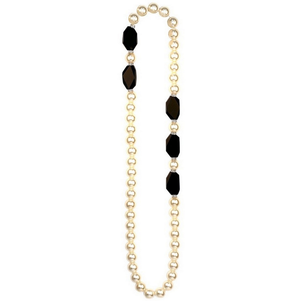 Necklace 20mm Bead Black Faceted 105cm Made With Resin & Pearl