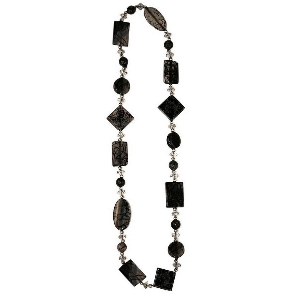 Necklace stone & crystal glass grey moss agate