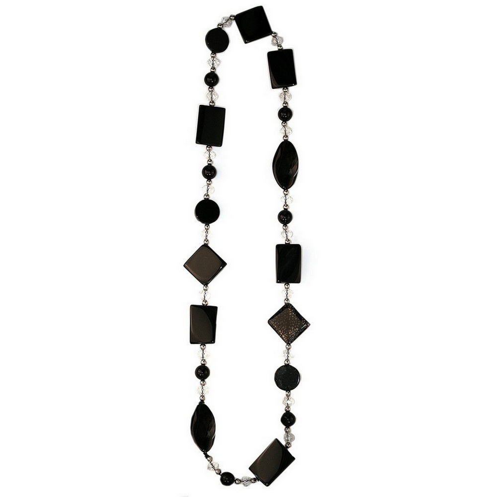 Necklace Black & Clear Made With Agate & Crystal Glass