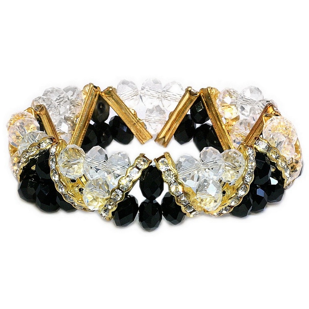 Bracelet crystal glass v-line facet clear & black gold