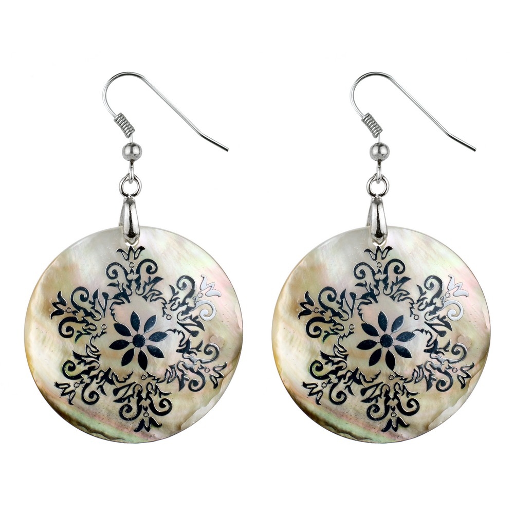 Drop Earring Etched Floral Filigree Swirl Made With Mother Of Pearl