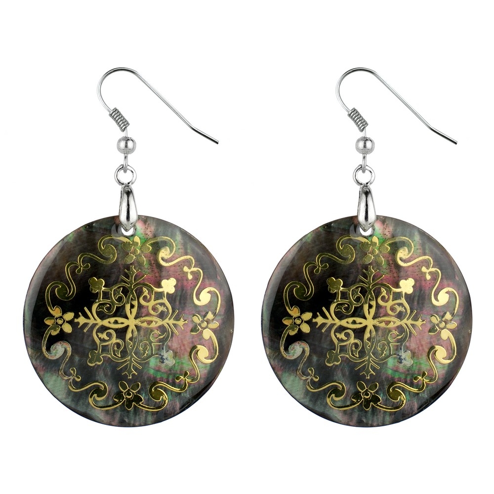 Drop Earring Etched Floral Filigree Swirl Made With Mother Of Pearl