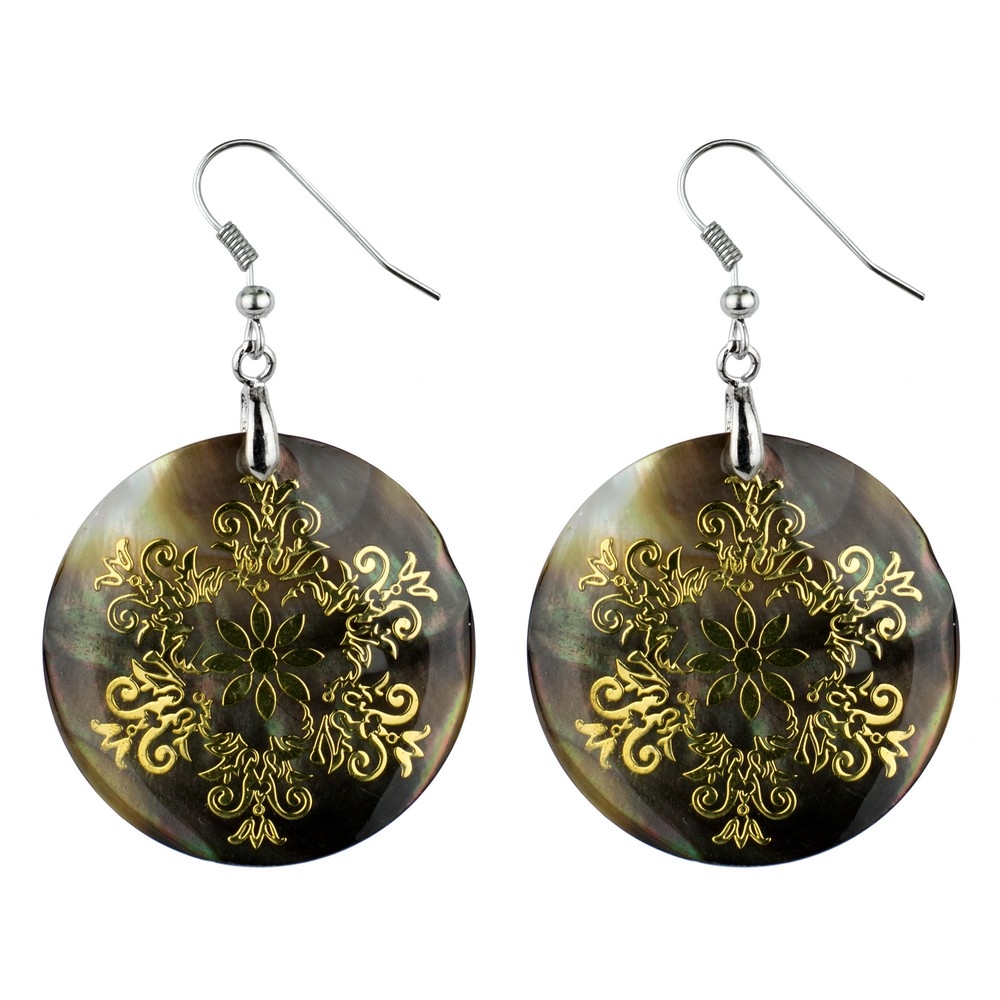 Drop Earring Etched Floral Filigree Flower Made With Mother Of Pearl
