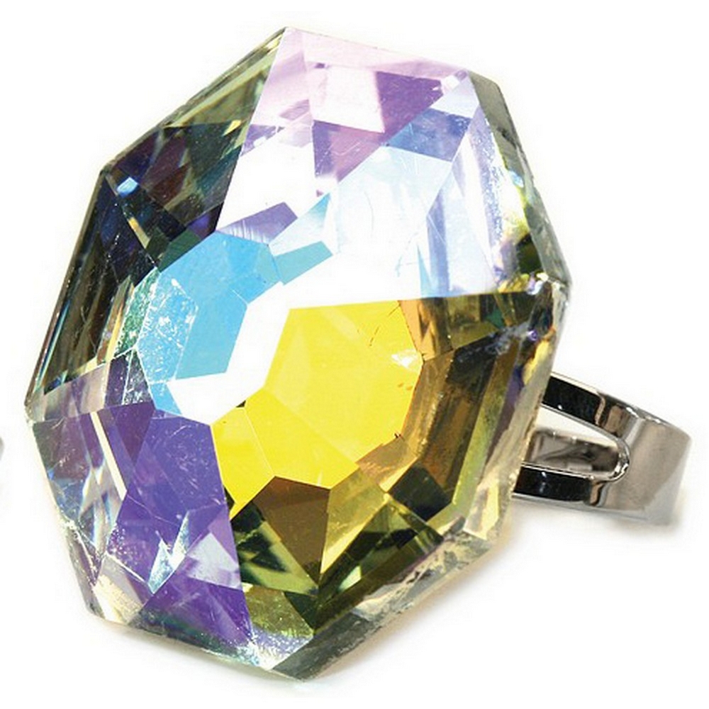 Ring Cocktail Aurora Borealis Faceted Made With Crystal Glass