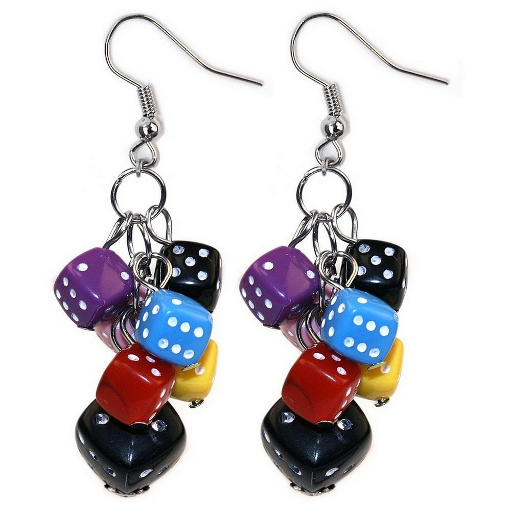 Drop Earring Lucky Dice Multi Coloured Bunch Made With Resin