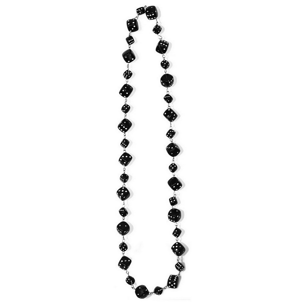 Bead String Necklace Lucky Dice Black & White Made With Resin