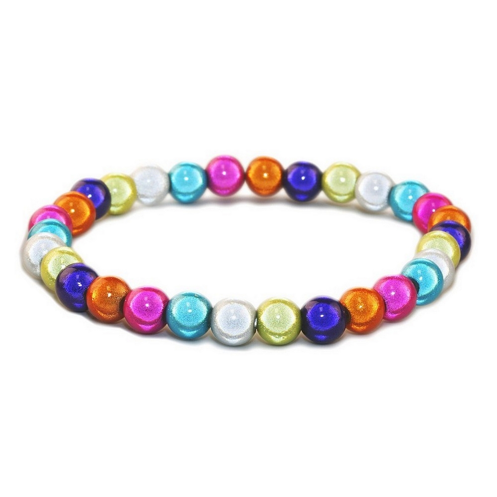 This bracelet is threaded on lycra and will fit wrists between 148 and 158 mm.