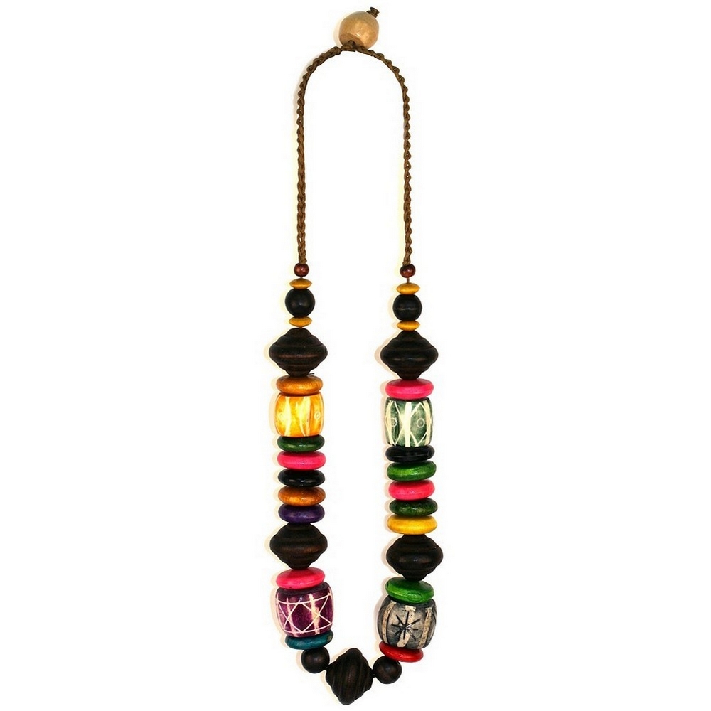Bead String Necklace Carved Bead Made With Bone & Wood