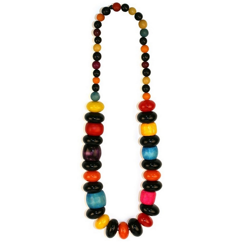 Necklace Black Havana Flat Saucer Bead Made With Wood