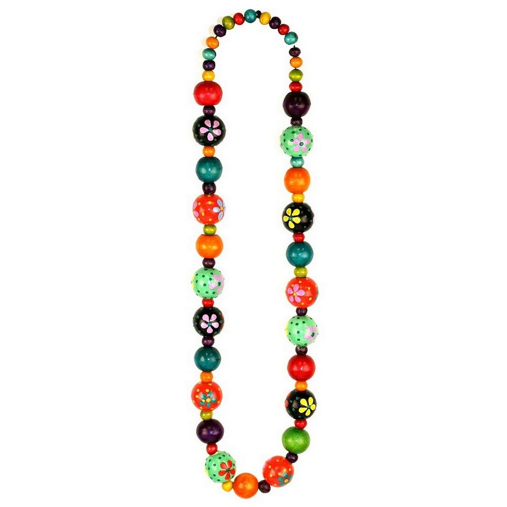 Bead String Necklace Flower Bead Made With Wood