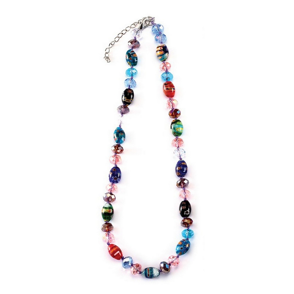 Bead String Necklace Oval Stones And Faceted Beads Made With Millefiori Glass