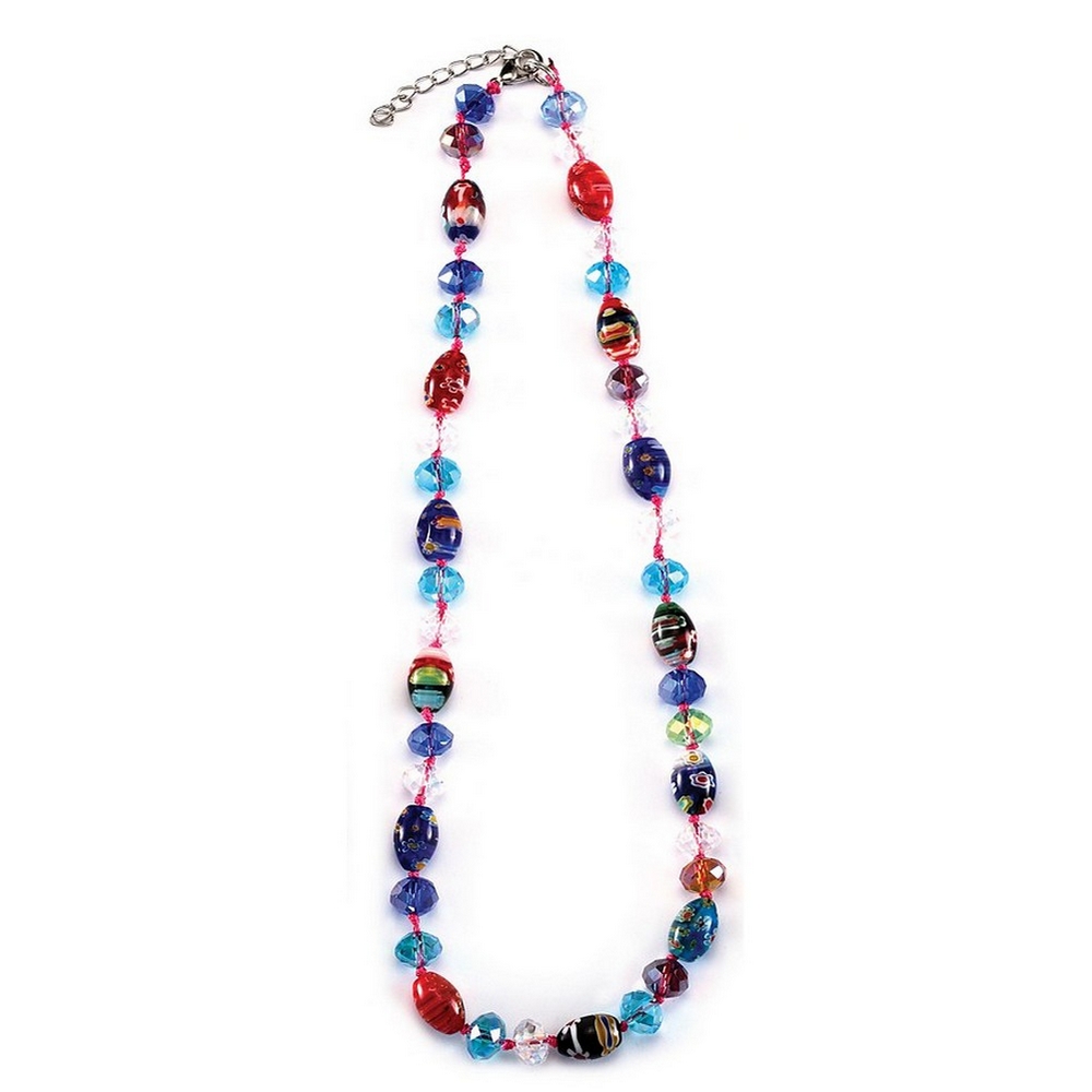 Bead String Necklace Oval Stones And Faceted Beads Made With Millefiori Glass