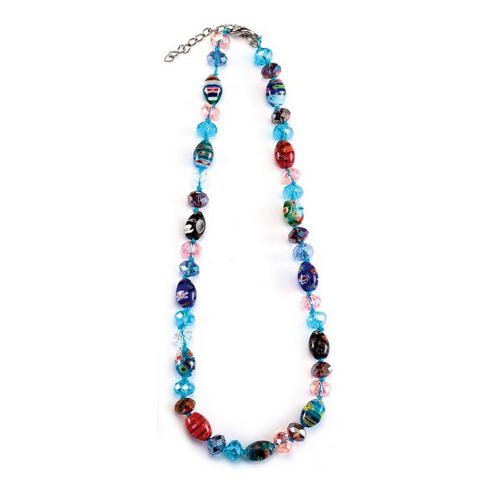 Bead String Necklace Oval Stones And Faceted Beads Made With Millefiori Glass