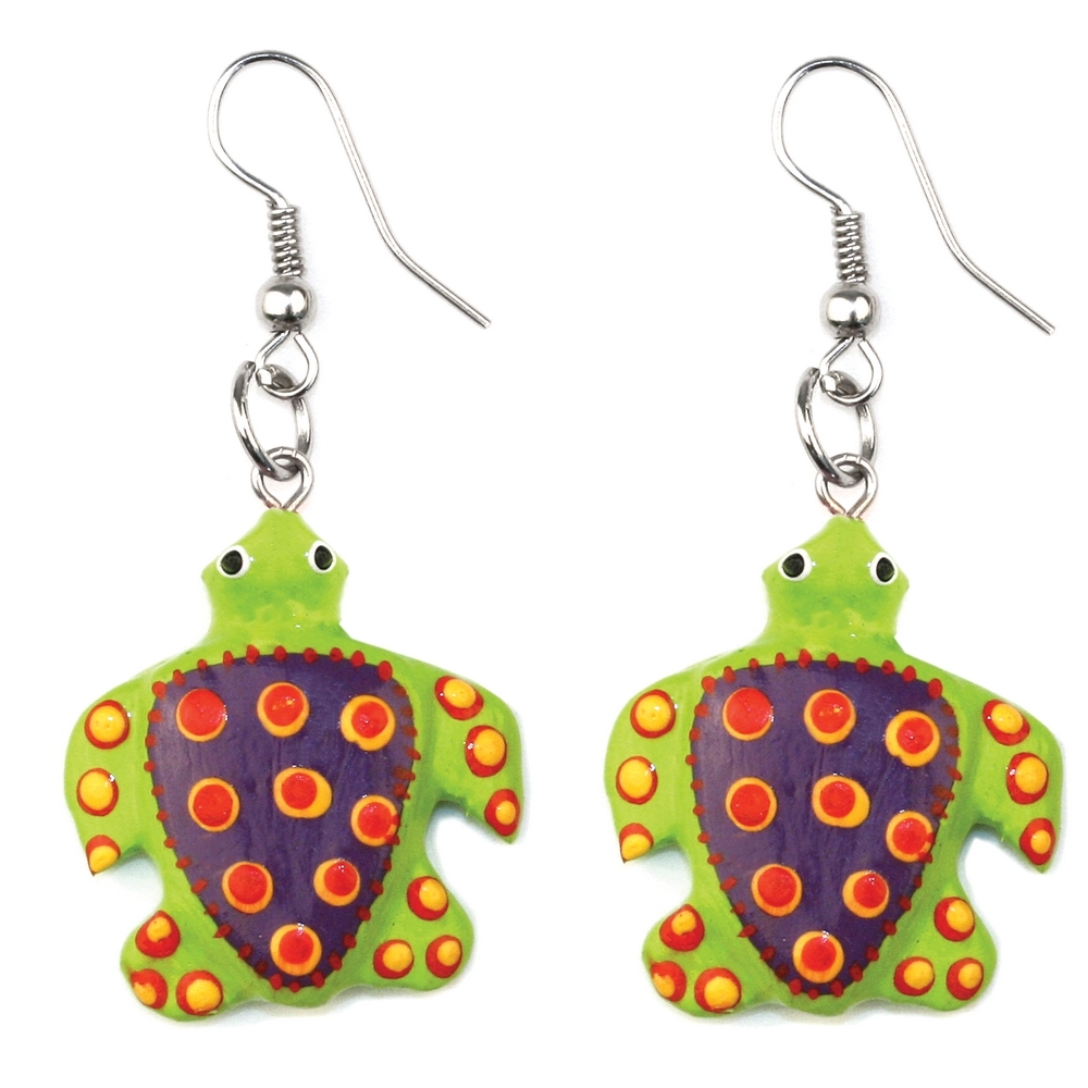 Drop Earring Turtle Made With Wood