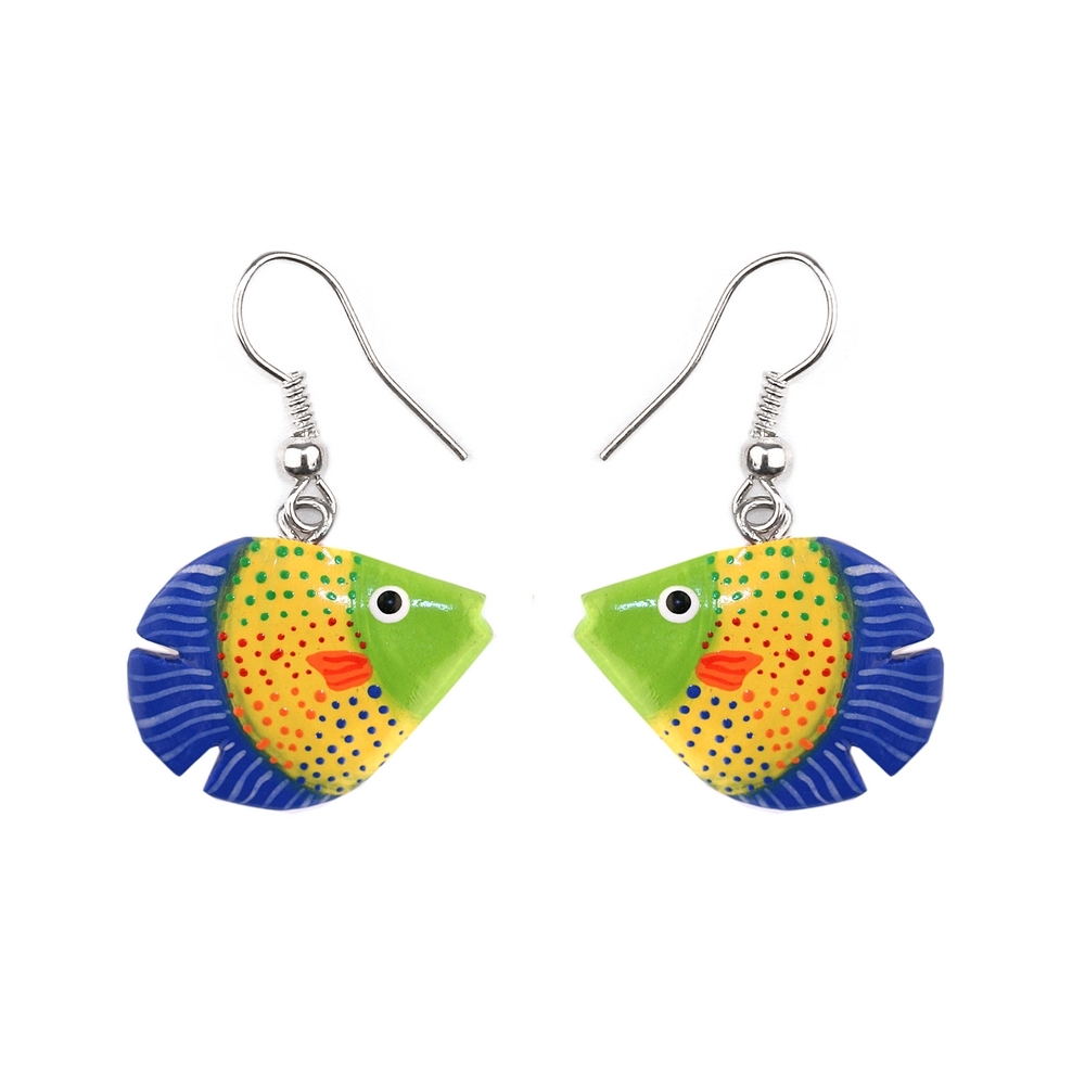 Drop Earring Hand Painted Assorted Fish Made With Wood