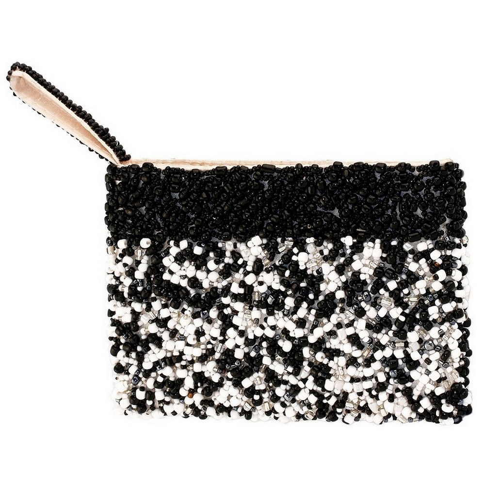 Coin Purse Handsewn Random Design With Trim Made With Glass Beads & Fabric