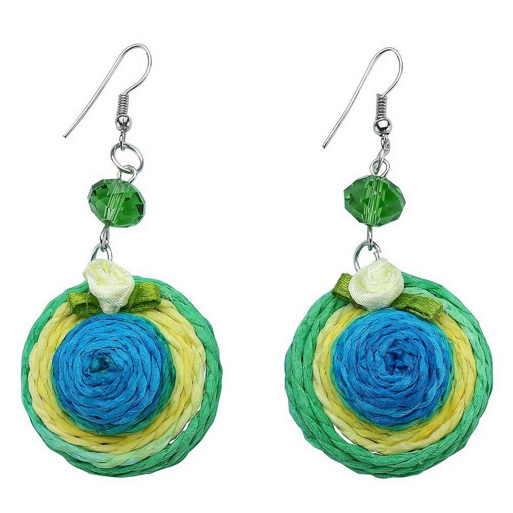 Drop Earring Hat 30mm Made With Raffia & Crystal Glass