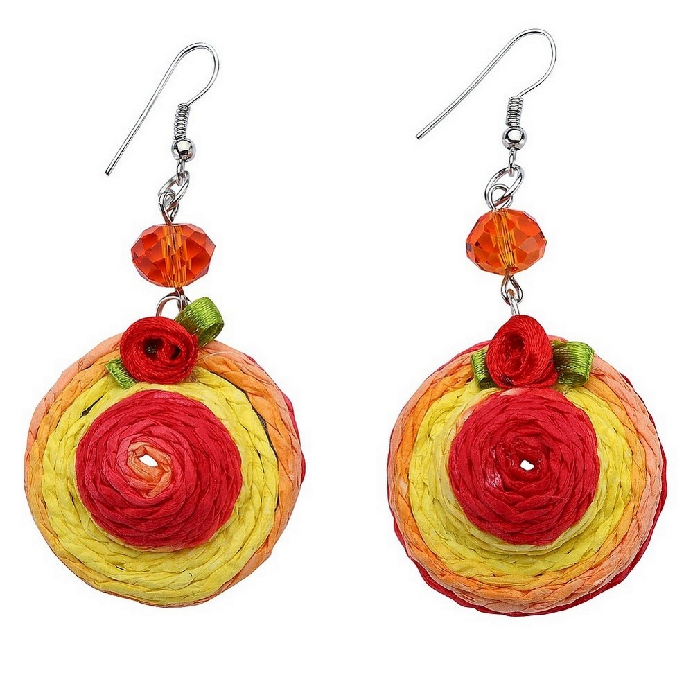 Drop Earring Hat 30mm Made With Raffia & Crystal Glass