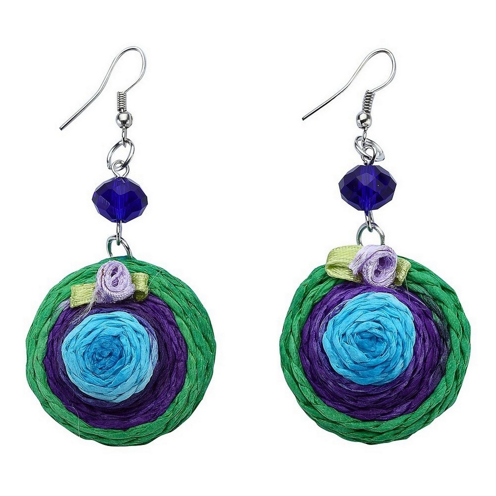 Drop Earring Hat 30mm Made With Raffia & Crystal Glass