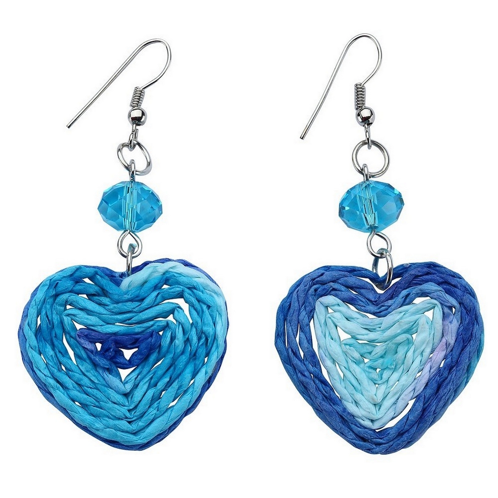 Drop Earring Heart Made With Raffia & Crystal Glass