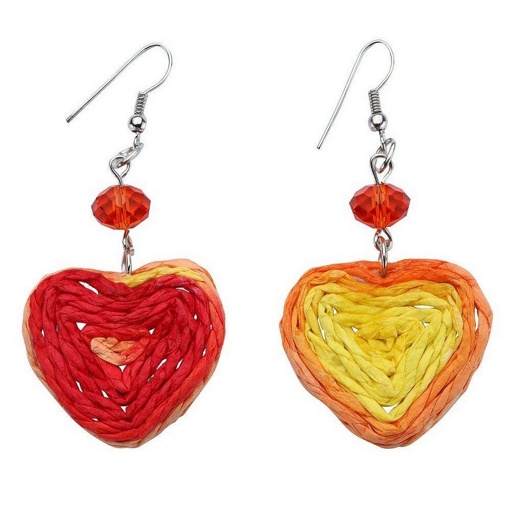 Drop Earring Heart Made With Raffia & Crystal Glass