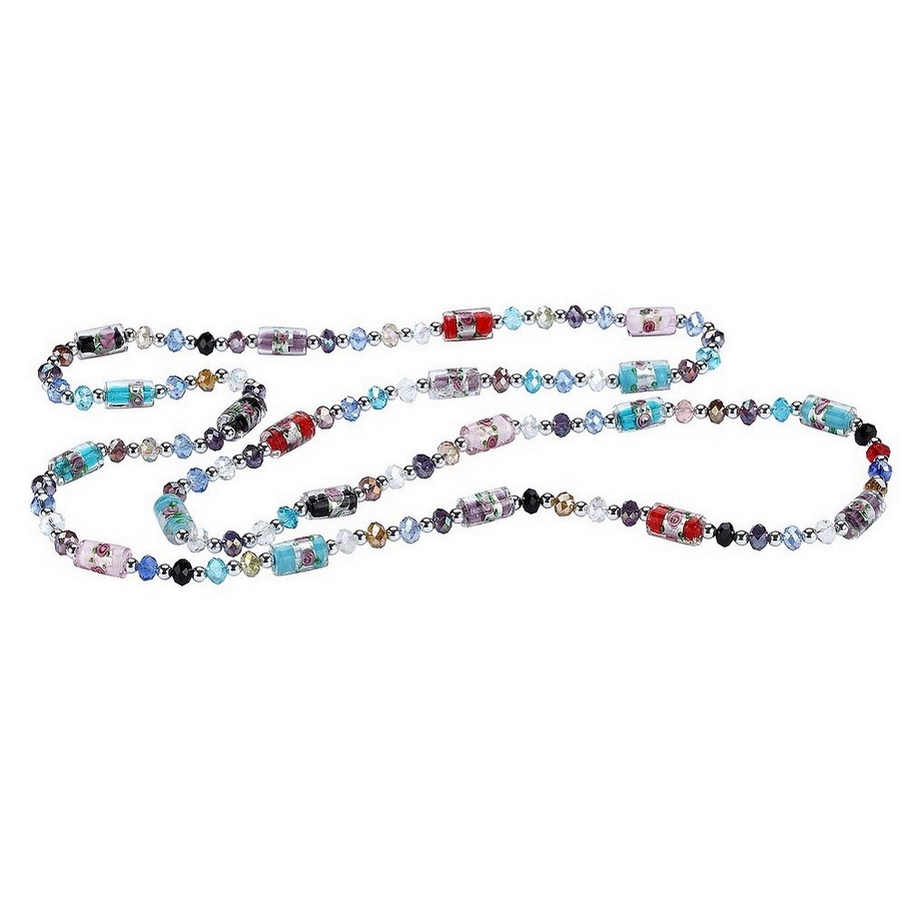 Bead String Necklace Lined Beads With Floral Designs 120cm Made With Crystal Glass