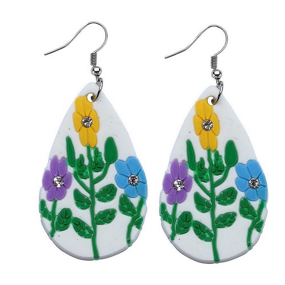 Drop earring neon tear drop flower white