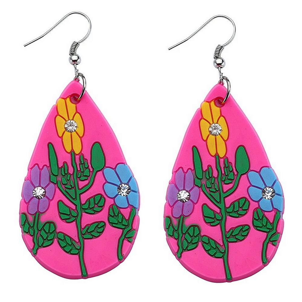 Drop earring neon tear drop flower pink