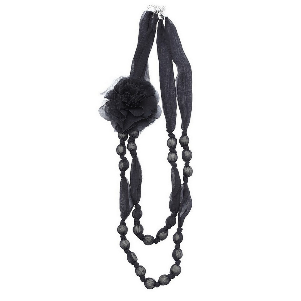 Bead String Necklace Animal Print Captured Beads And Flower Detail 90cm Made With Chiffon