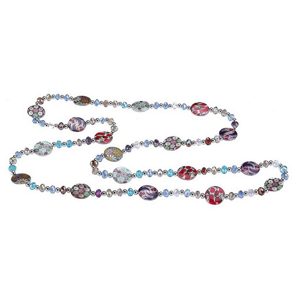 String Of Pearls Floral Print 120cm Made With Crystal Glass & Mother Of Pearl