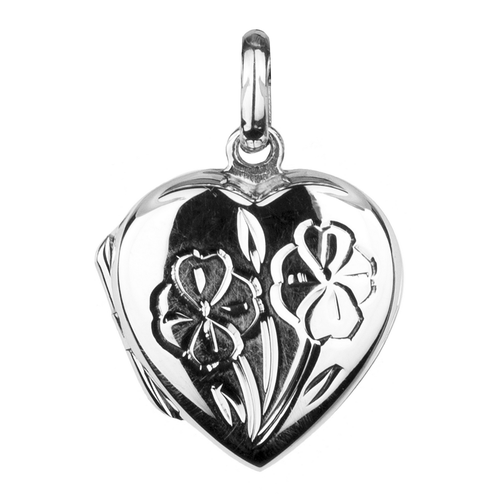 Pendant Heart Locket Engraved Flowers 15mm (no Chain) Made With 925 Silver