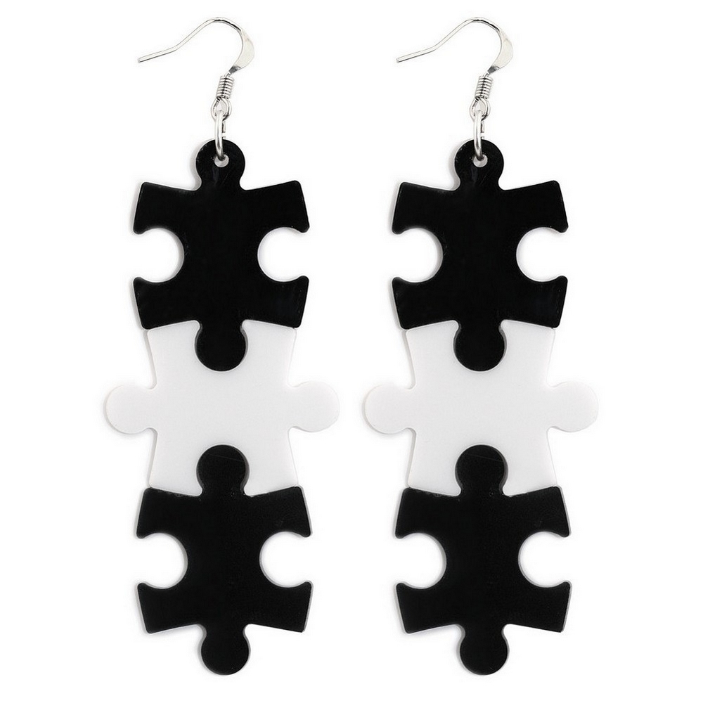 Drop Earring 3 Piece Jigsaw Made With Acrylic & Surgical Steel