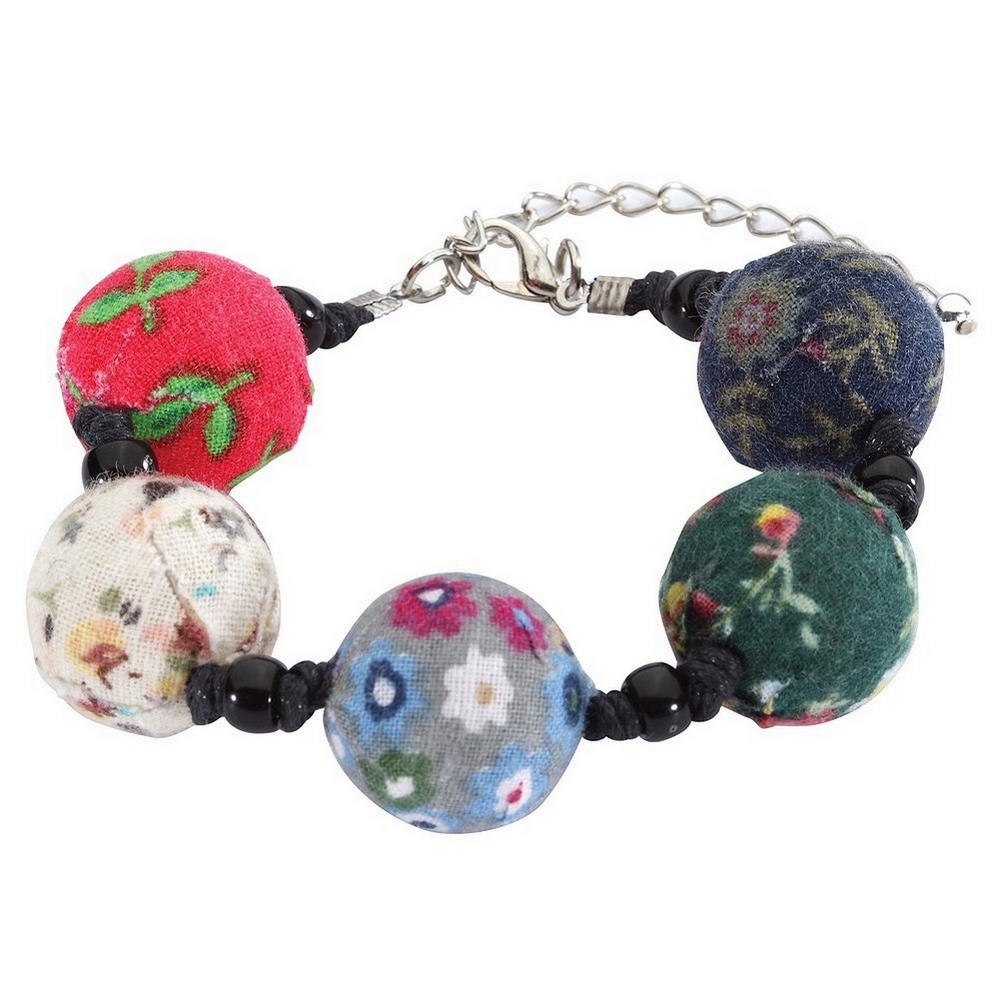 Bracelet Beads With Flower Design Made With Fabric & Glass