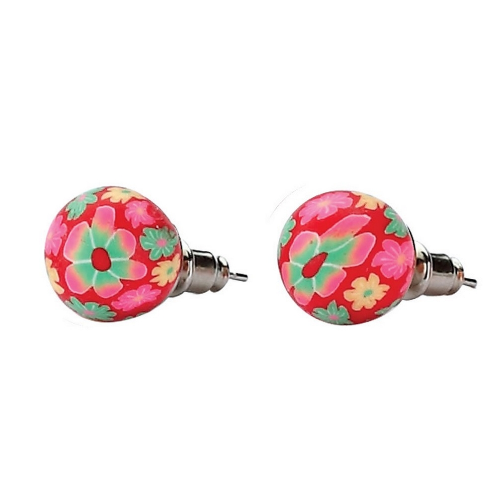 Stud Earring Handmade Floral Beads Made With Resin
