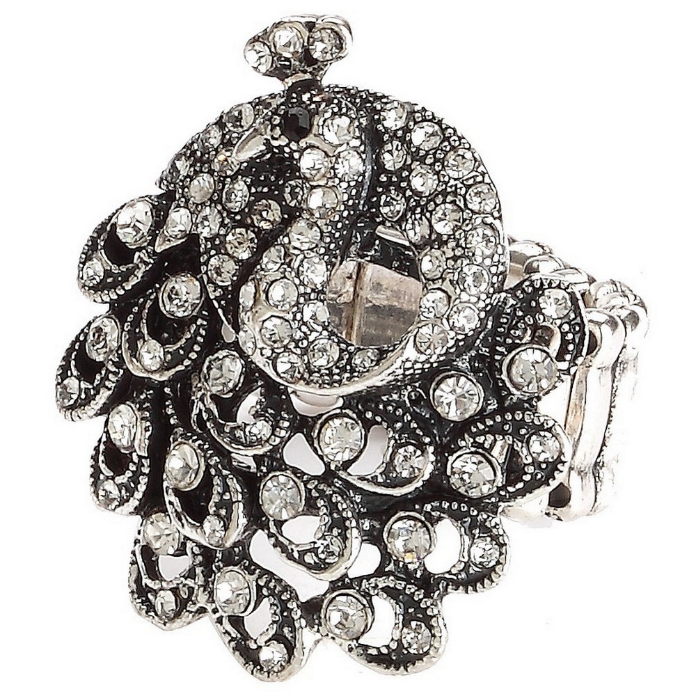 Ring crystal glass embedded peacock with a beaded band