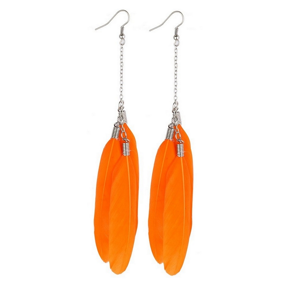 Drop Earring Bunch On Chain Made With Feather