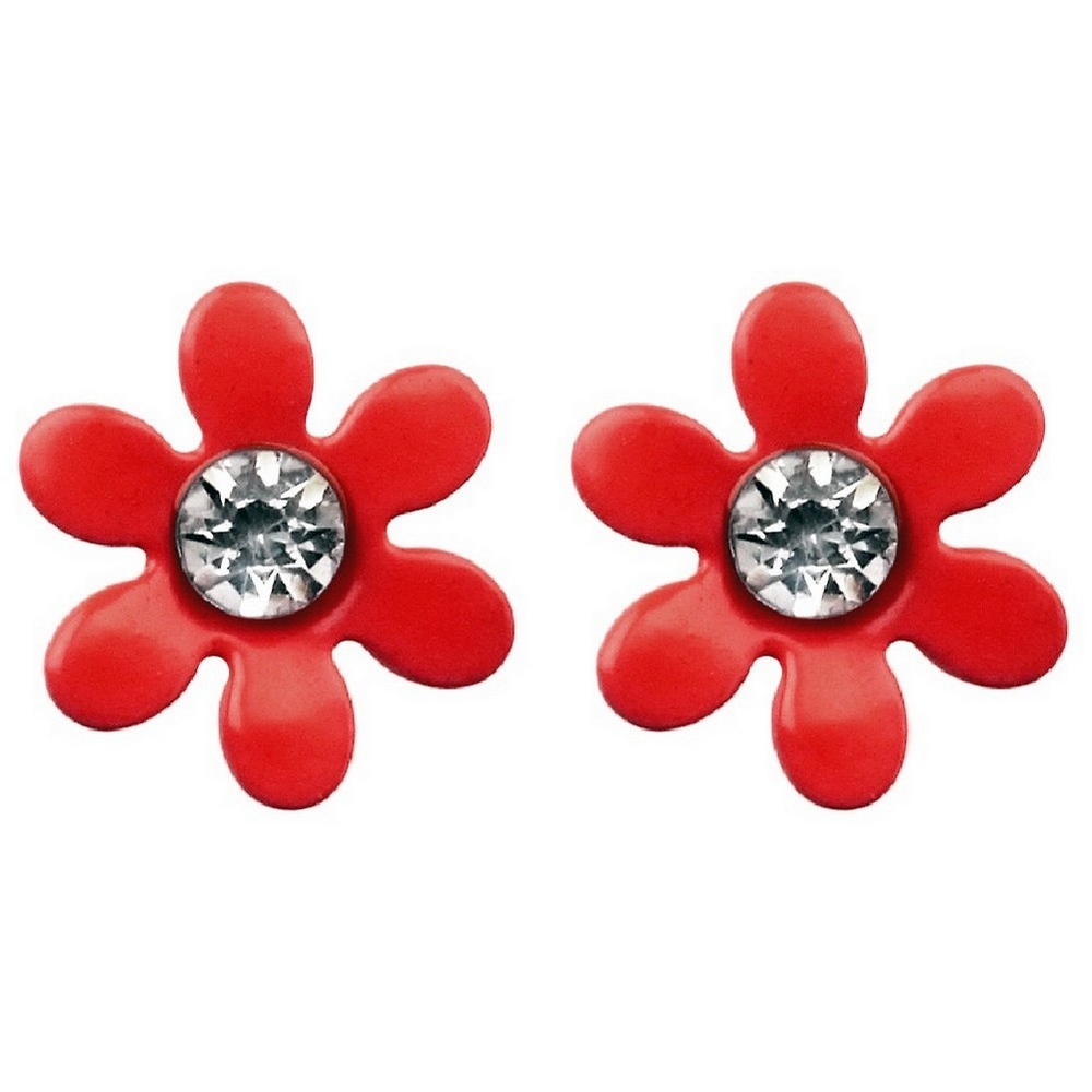 Stud Earring Delicate Flower Made With Crystal Glass & Enamel