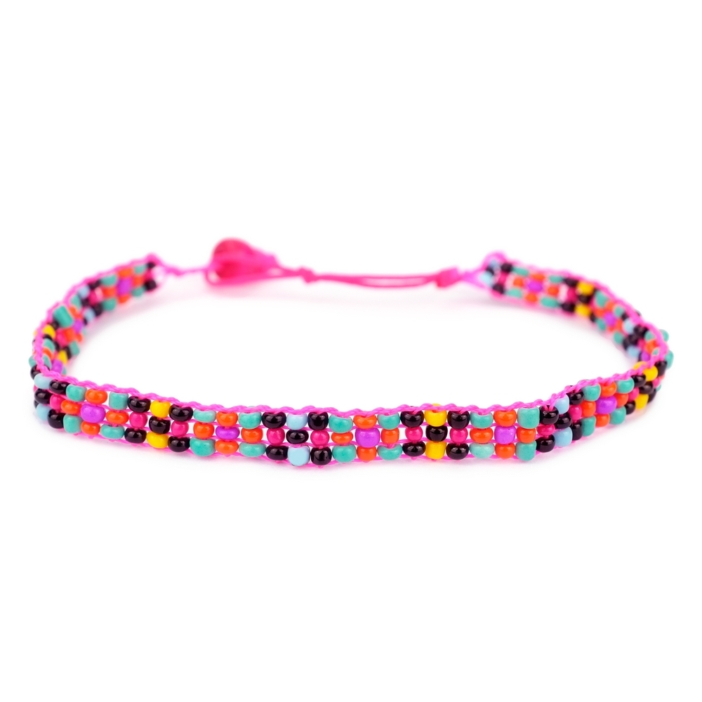 Bracelet Mini Beads 3 Row Design Made With Glass & Cord
