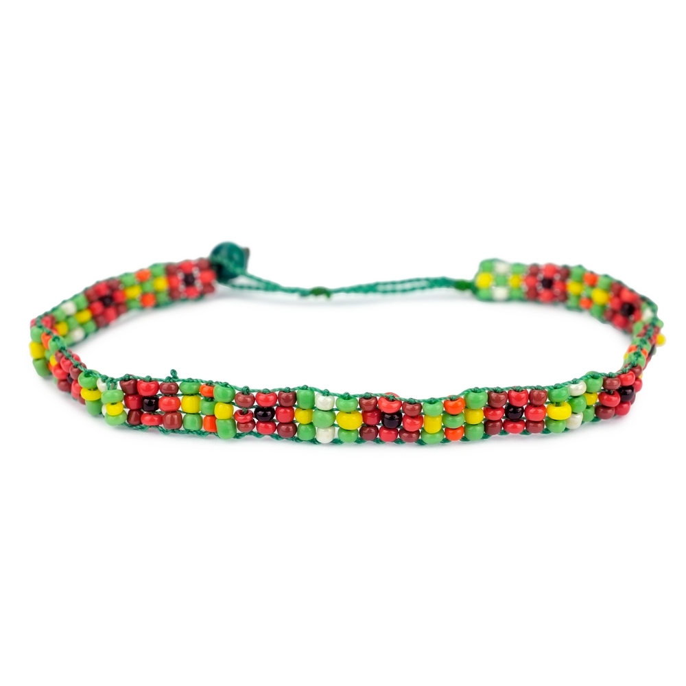 Bracelet Mini Beads 3 Row Design Made With Glass & Cord