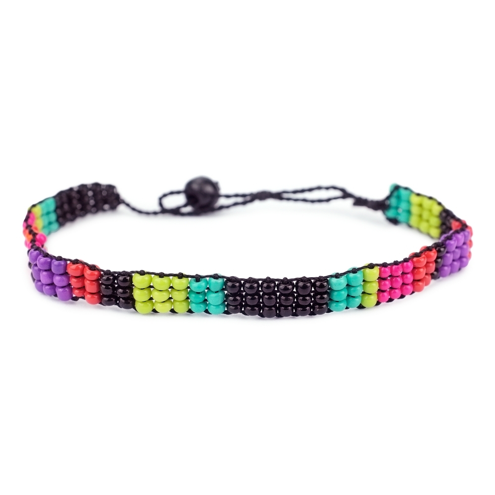 Bracelet Mini Beads 3 Row Design Made With Glass & Cord