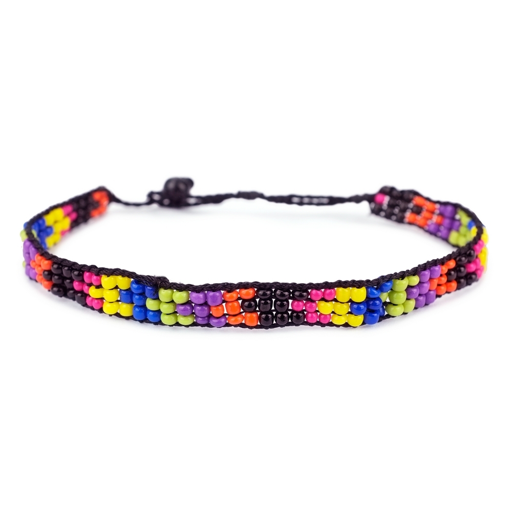 Bracelet Mini Beads 3 Row Design Made With Glass & Cord