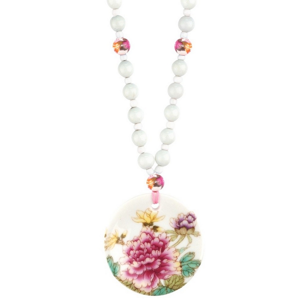 Necklace With A Pendant Circle 46cm Made With Cord & Ceramic