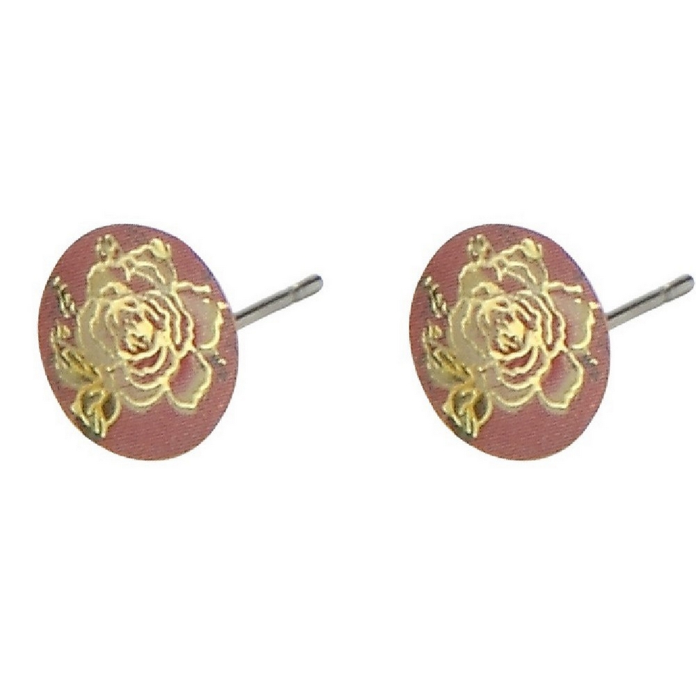 Be the first to review “Stud earring etched and enamelled flowers pink and gold floral”