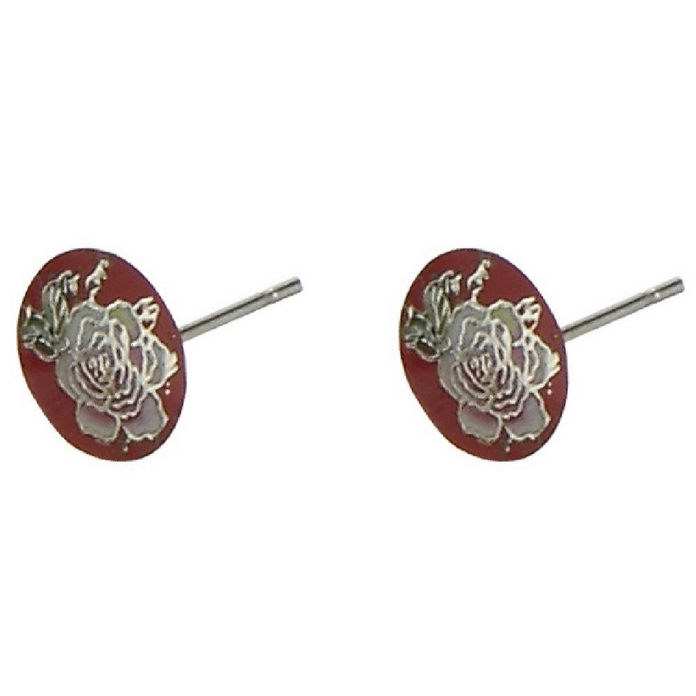 Be the first to review “Stud earring etched and enamelled flowers red and silver flower”